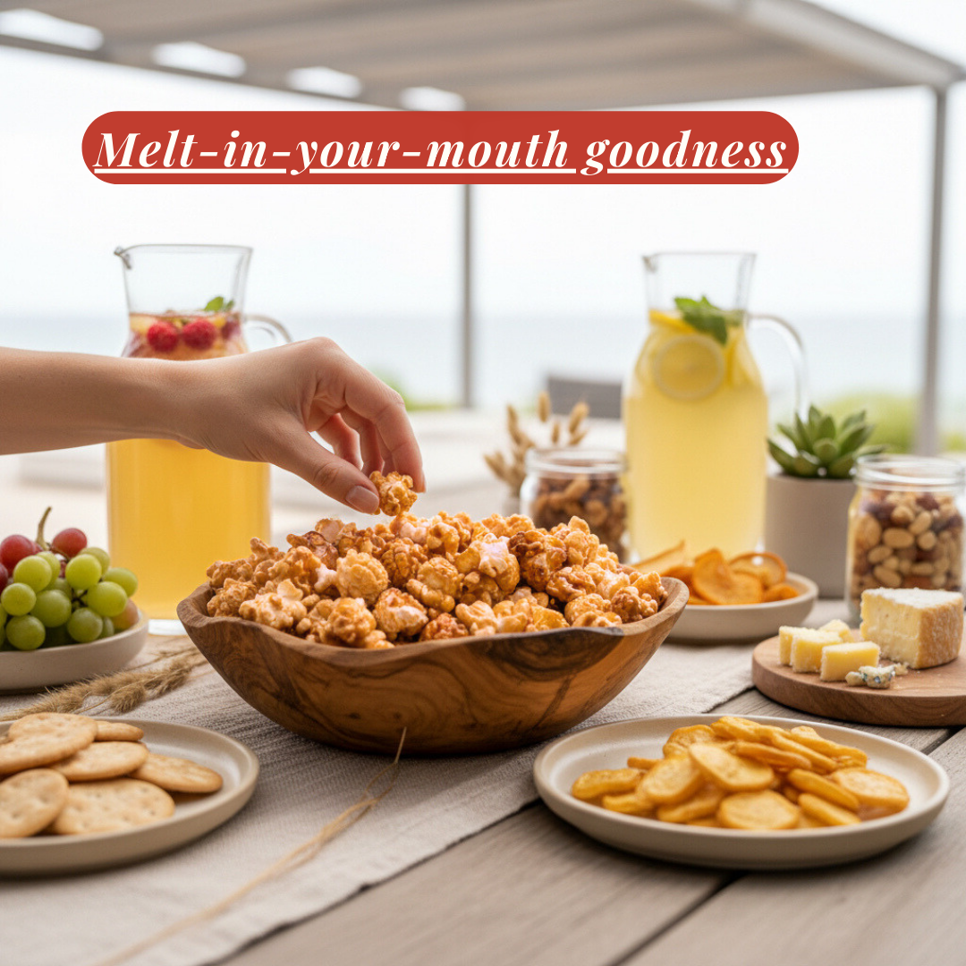 Coated in smooth, golden caramel, this popcorn offers a rich, melt-in-your-mouth sweetness with every bite. Perfectly crunchy and irresistibly satisfying, it’s a favorite for dessert tables, gifting, and special occasions.